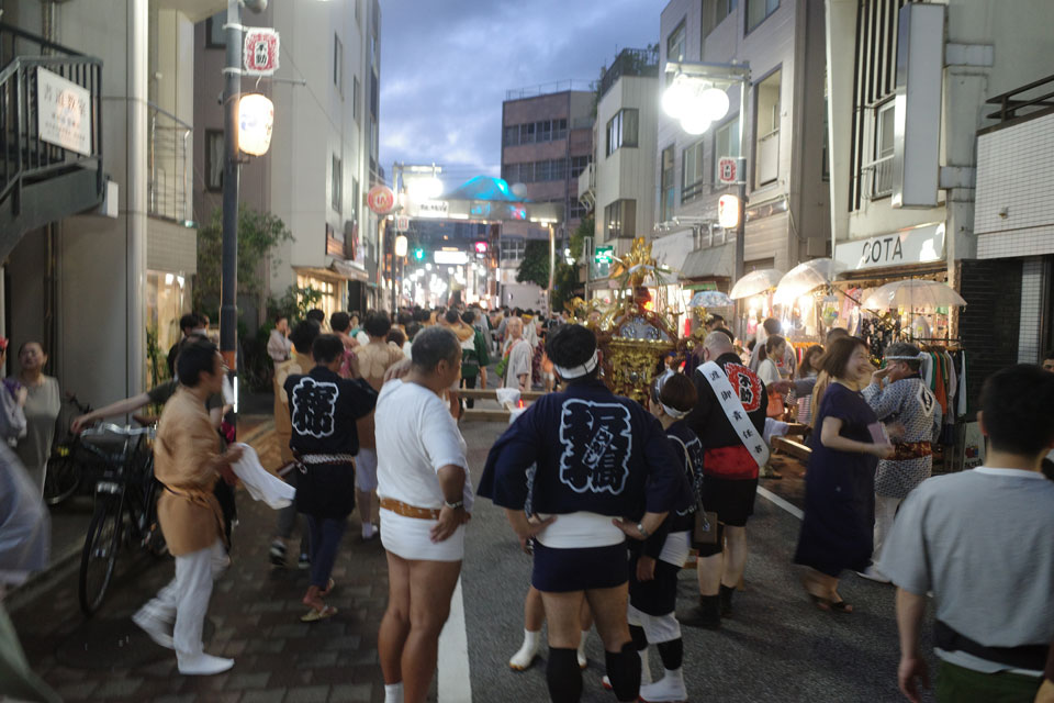夕方買い物に出たら商店街にお神輿が。