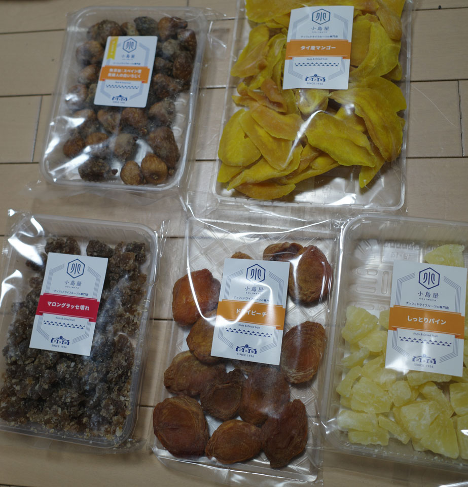 年末年始いかがお過ごしでしょうか。 普通の年越しや正月用に食べるものなどはこの数日近所で買ってきてますが、おやつと言うかちょっとつまむものとして豆類だけは上野アメ横で買います。 何しろこれで1000円。 ことしはついでにドライフルーツも買いました。 アメ横を豆の店からアメ横を上野から反対側の御徒町近くの店へ。 これだけ買うとこちらはさすがに1000円というわけに行かないけど。 特筆すべきは左上のイチジク、なんとかの貴婦人てラベルにあってそこまで書くかなあと食べてみたらブランデーに漬け込んであったのかと思うくらいの芳醇さ。参りました。 このブログでの記事はこれで最後となり、来年からは別のブログに引っ越す予定です。 良いお年を。 PR |
